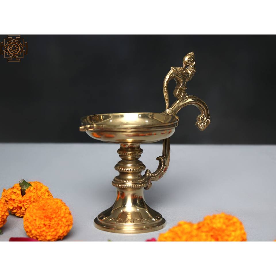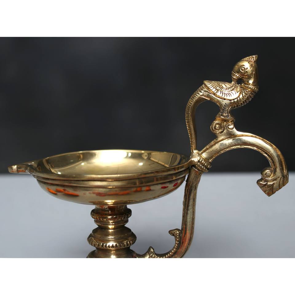 Lampes et accessoires à huile Diya à poignée de perroquet en laiton de 6 pouces fabriqués à la main en Inde