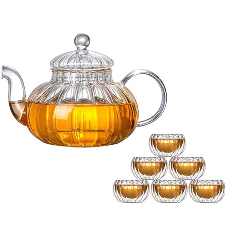Théière en verre borosilicate de 600 ml et 800 ml, design citrouille, faite à la main, avec infuseur en verre