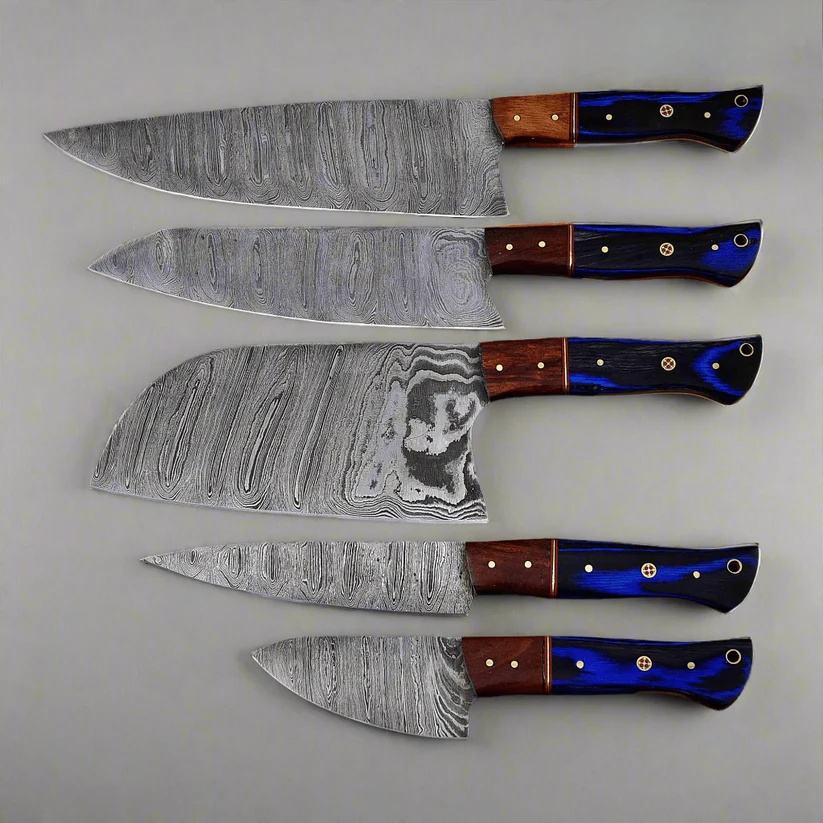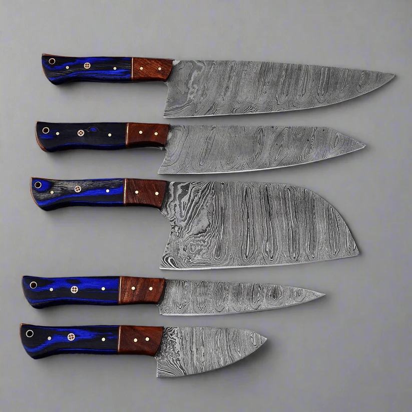 Ensemble de couteaux de chef en acier damas à 67 couches, faits à la main, 5 pièces, manches en bois ambidextres, couteaux de cuisine et de barbecue écologiques