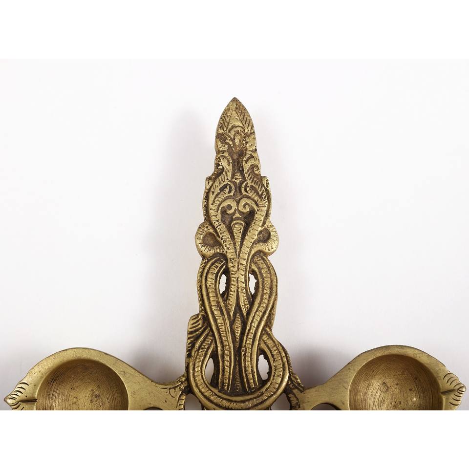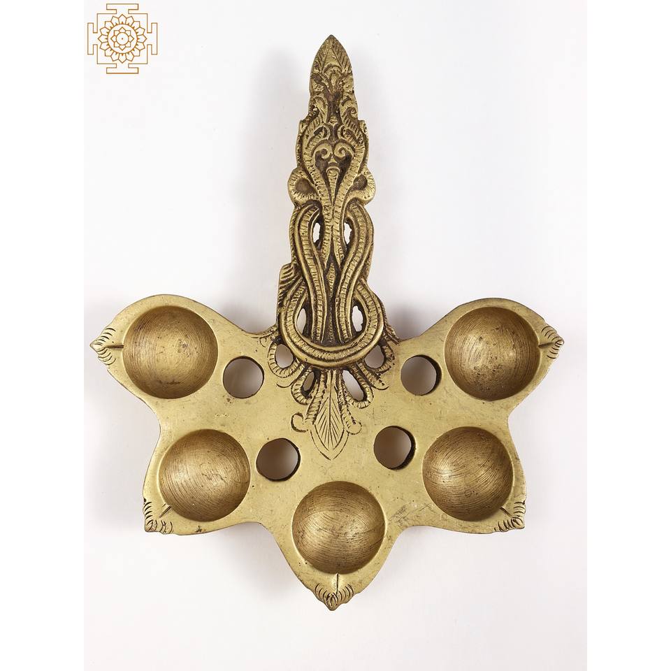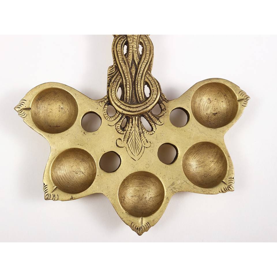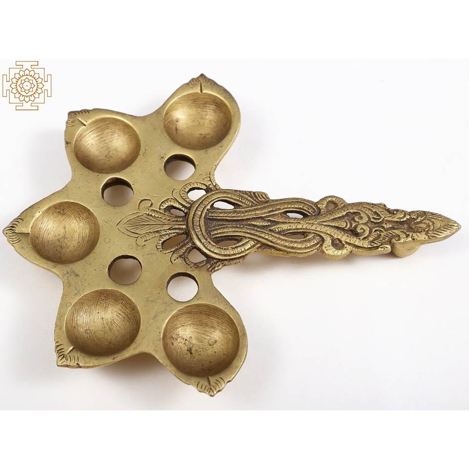 Lampe à huile Arti en laiton de 7 pouces, fabriquée à la main en Inde, avec cinq mèches et accessoires, article portatif fabriqué en Inde