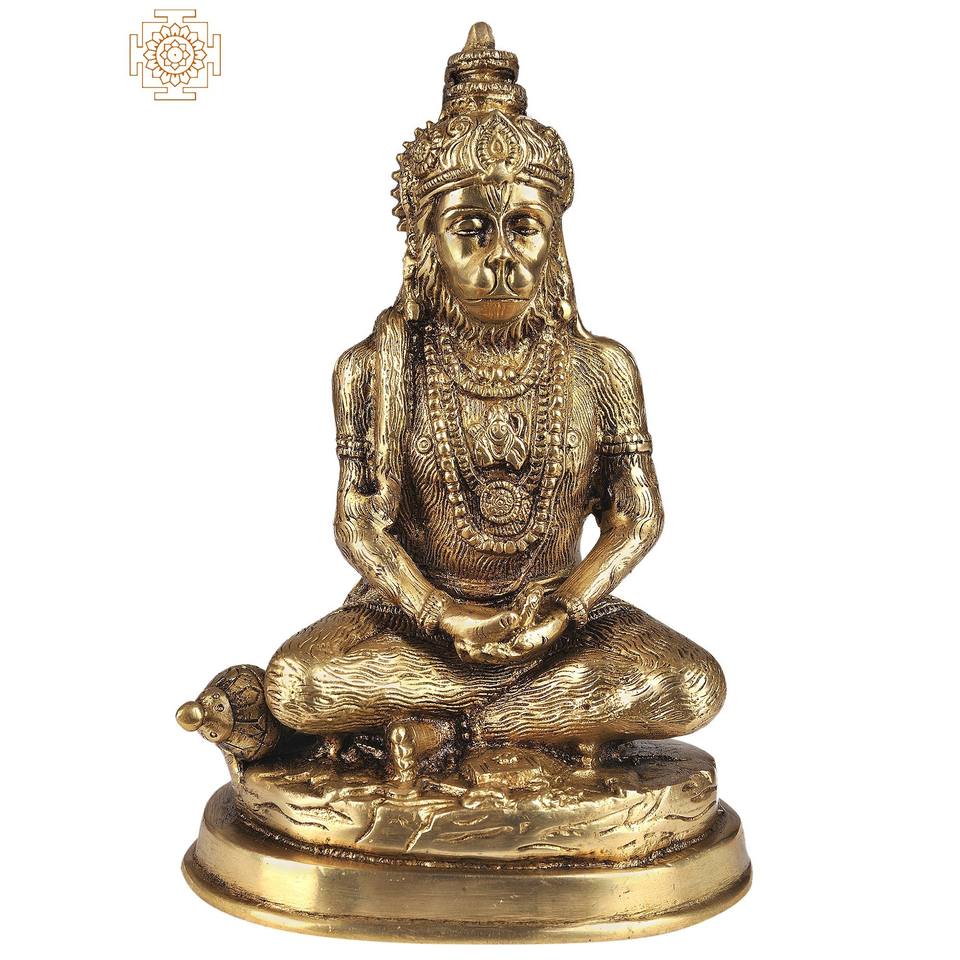Statue de seigneur Hanuman en laiton de 7 pouces faite à la main dans la sculpture indienne de Dhyana Mudra pour offrir