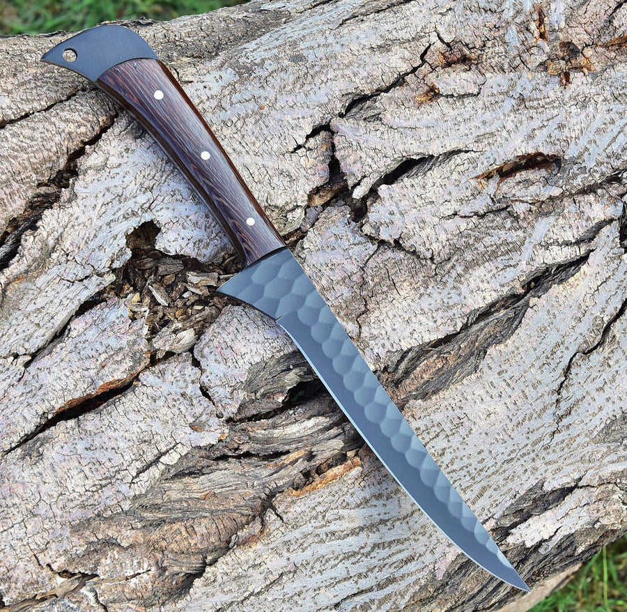 Couteau à filet en acier damas de 8 pouces fait à la main lame en bois à haute teneur en carbone gravé sur mesure en acier au carbone de haute qualité pour la pêche
