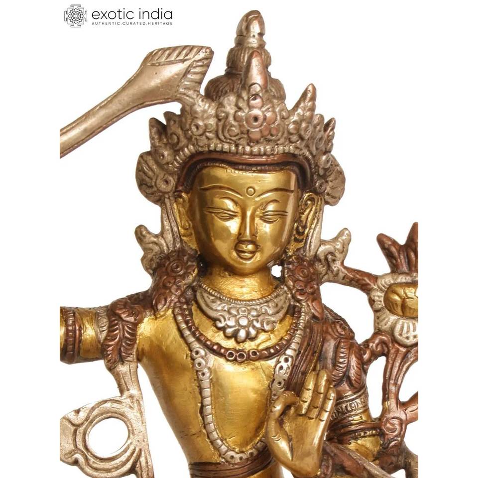 Sculpture en laiton de Manjushri de divinité bouddhiste tibétaine faite à la main de 8 pouces pour des cadeaux fabriqués en Inde