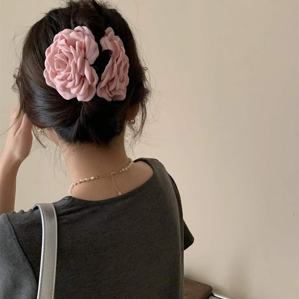 Pince à cheveux élégante en tissu rose rouge de 9,5 cm faite à la main pour femmes et filles