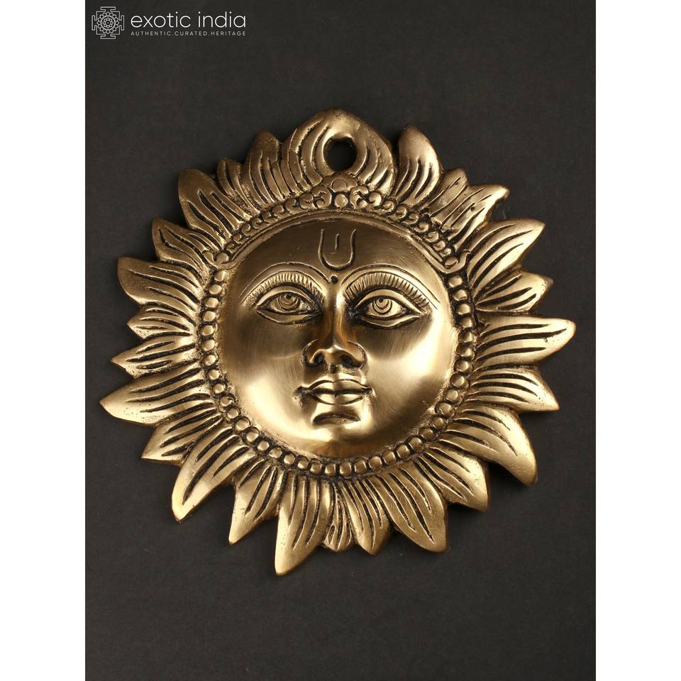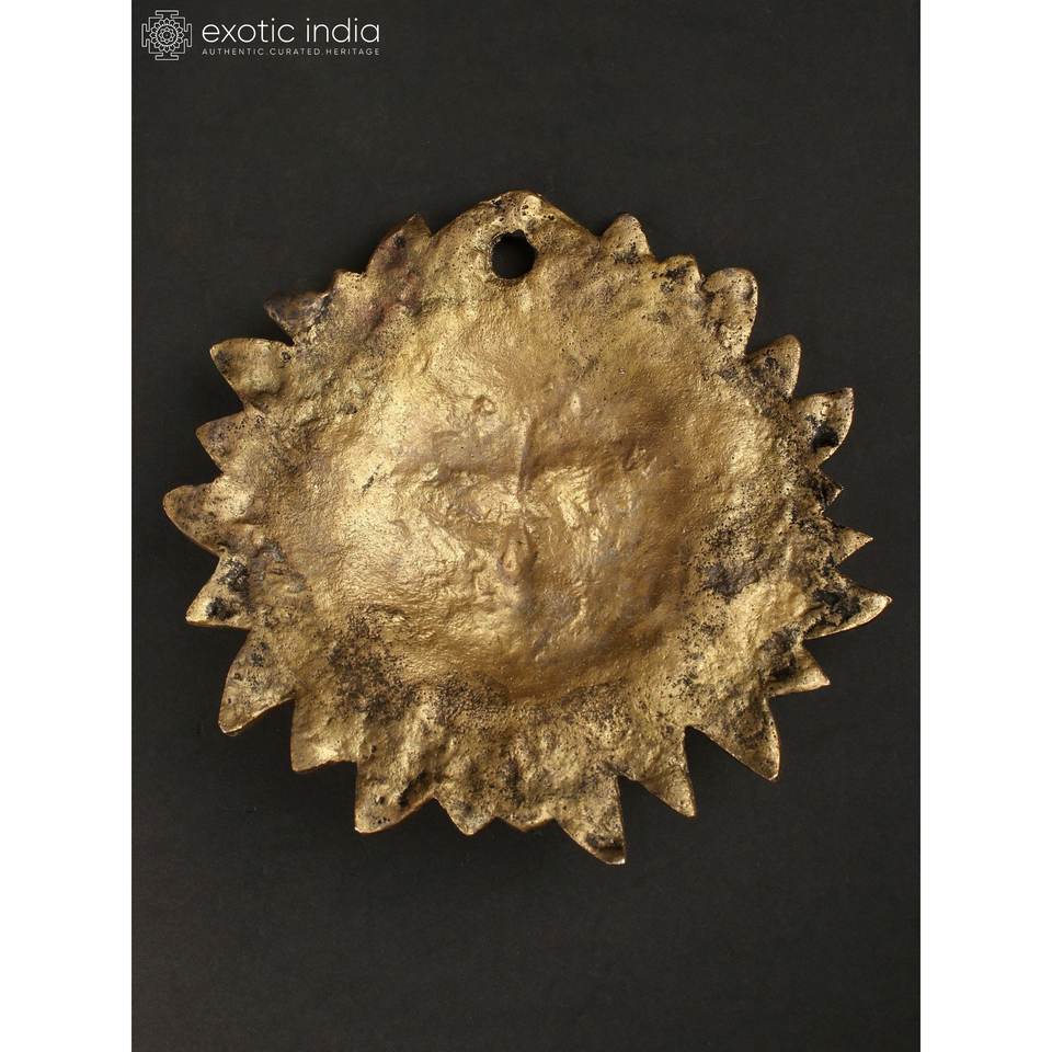 Tenture murale faite à la main de 9 pouces en laiton motif de soleil article de bon augure fabriqué en Inde pour les cadeaux