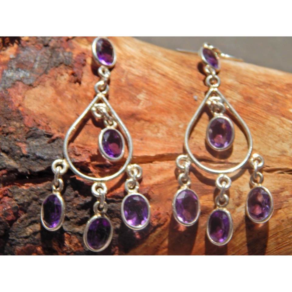 Boucles d'oreilles élégantes en argent 925 faites à la main avec cadeau de pierre précieuse d'améthyste à facettes pour les femmes