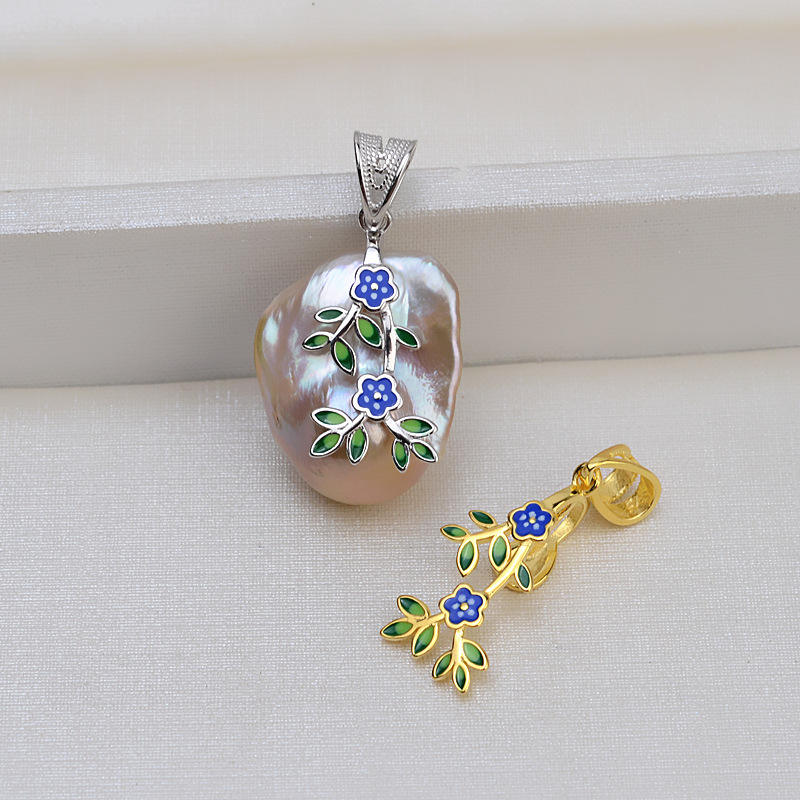 Pendentif en argent 925 fait main Wenchi, fleur baroque en époxy, feuille, pour femmes, base vide en forme spéciale, perle, accessoires de bricolage