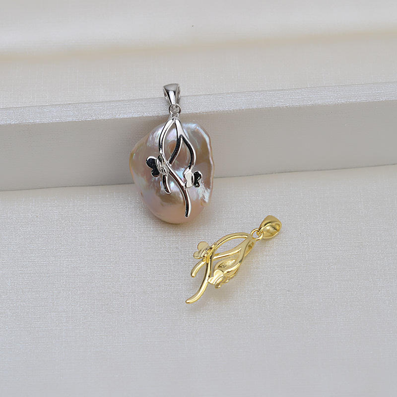 Pendentif papillon en argent 925 fait main avec perle baroque, collier en perle de forme spéciale pour femme, porte-perle vide, pendentifs fins, breloques