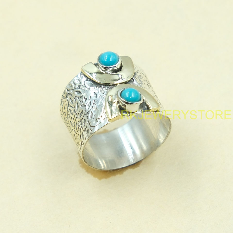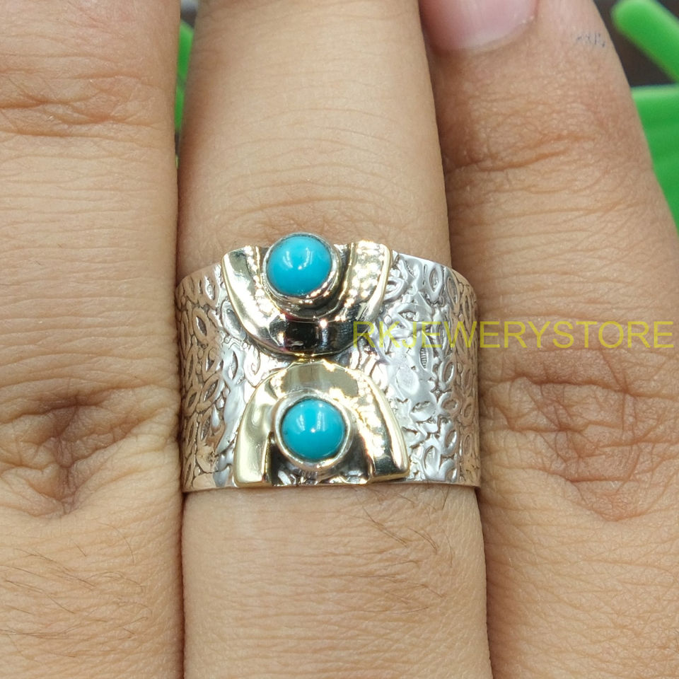 Bague Statement en Argent 925 Fait Main avec Pierre Turquoise pour Femme, Style Vintage Bohème, Large Bande en Laiton, Bijou Artisanal, Cadeau Unisexe