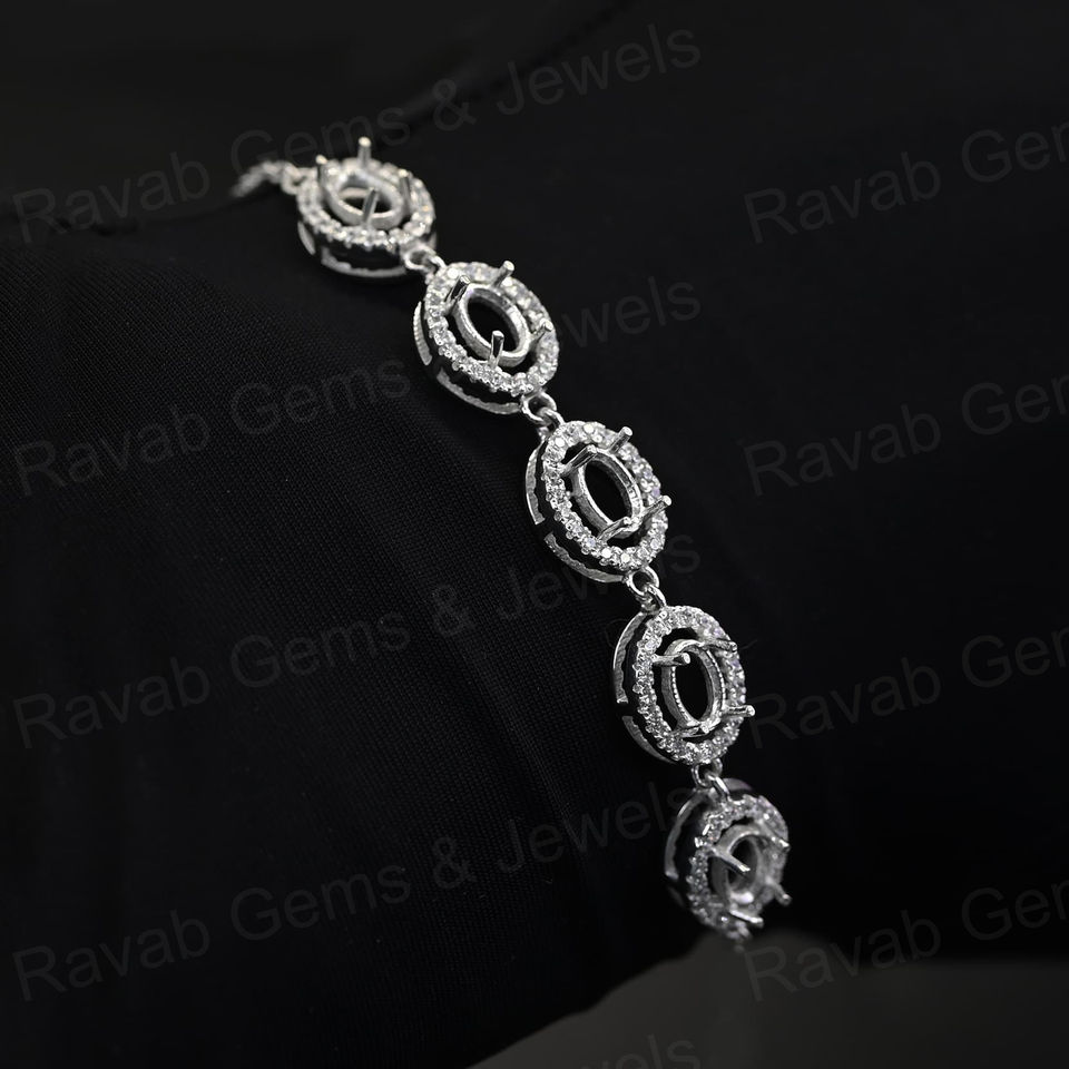Semi-monture de bracelet ovale 4x6mm à 4 griffes, en argent massif 925 fait main, avec halo de 5 pierres, pour bijoux en cendres de CZ, compatible or 14K