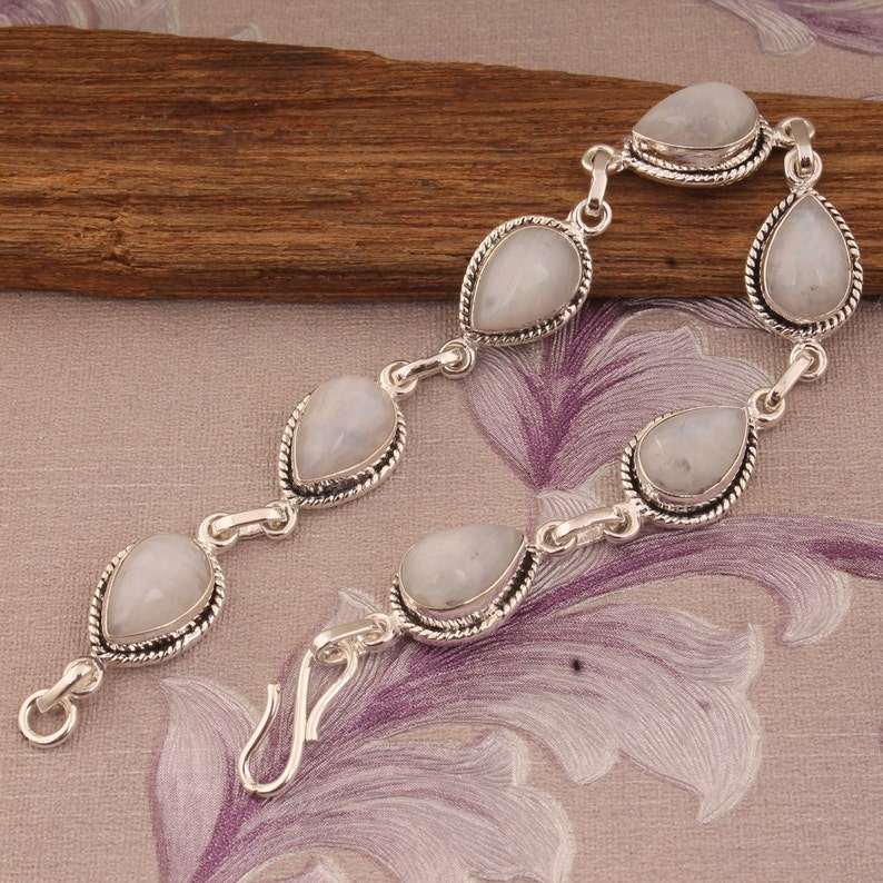 Handmade 925 Sterling Silver Adjustable Chain Natural Teardrop Moonstone Bracelet for Women Christian Party Fine Chain Link
