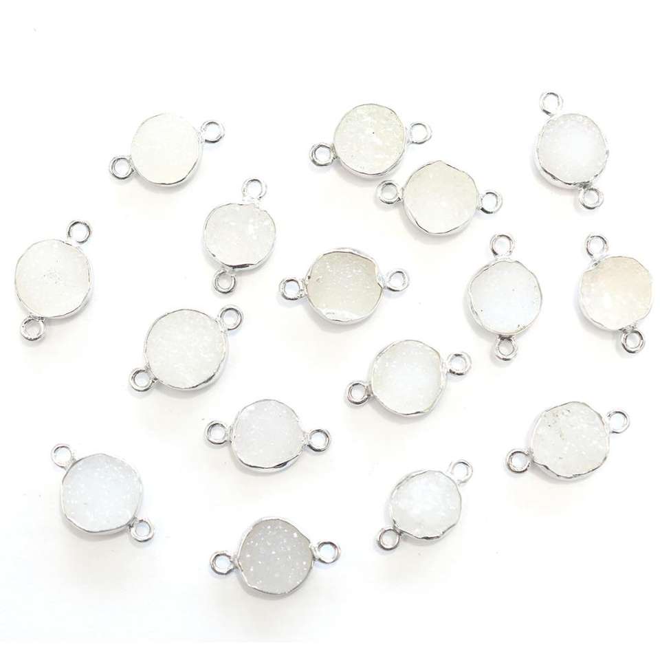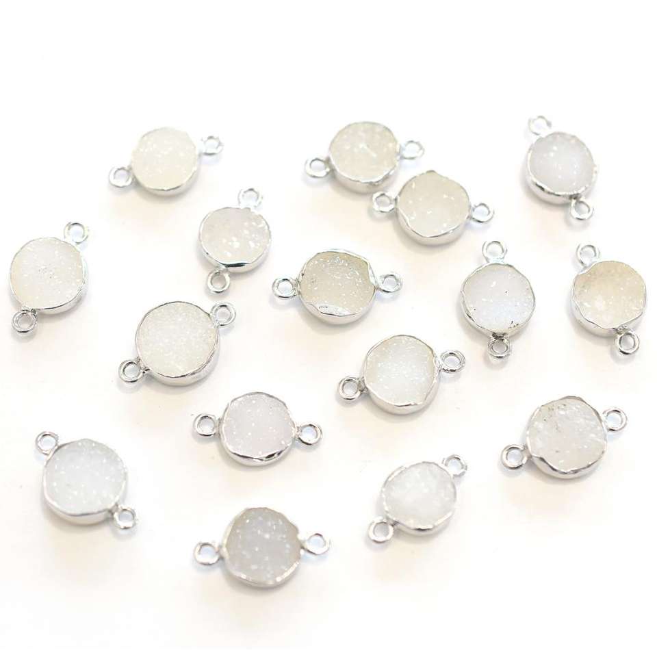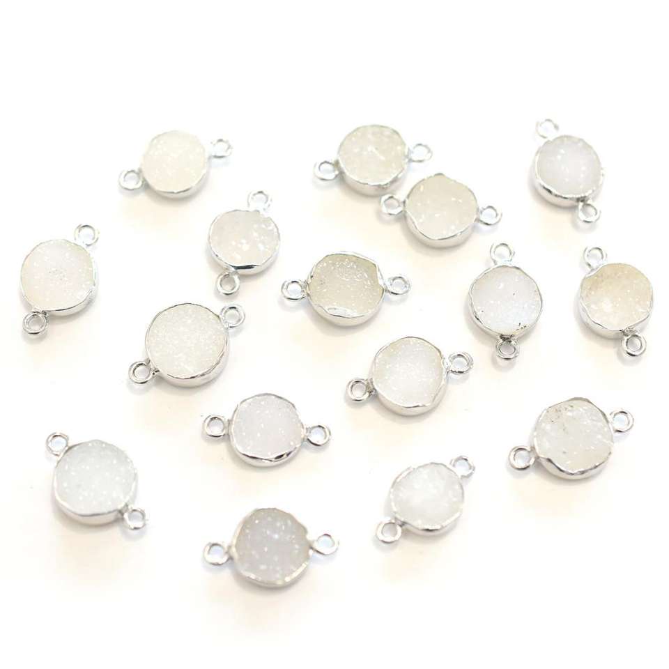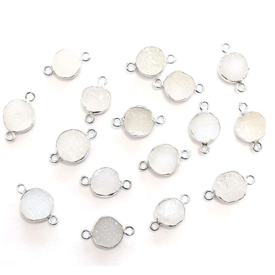 Product Name:White Druzy Round Shape Silver Bezel Silver Plated Connector
