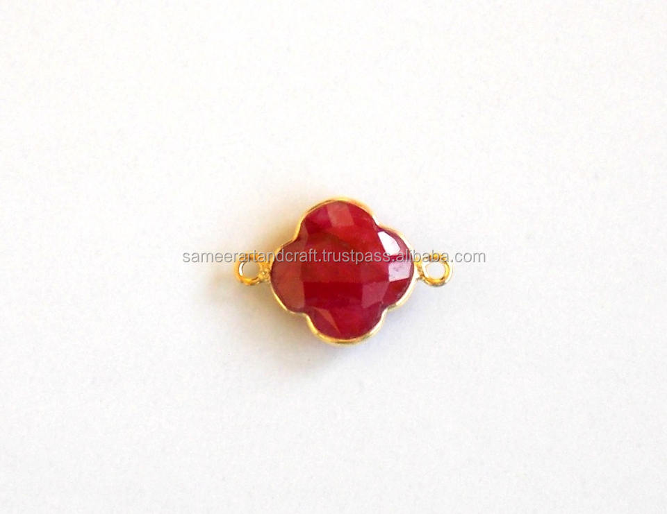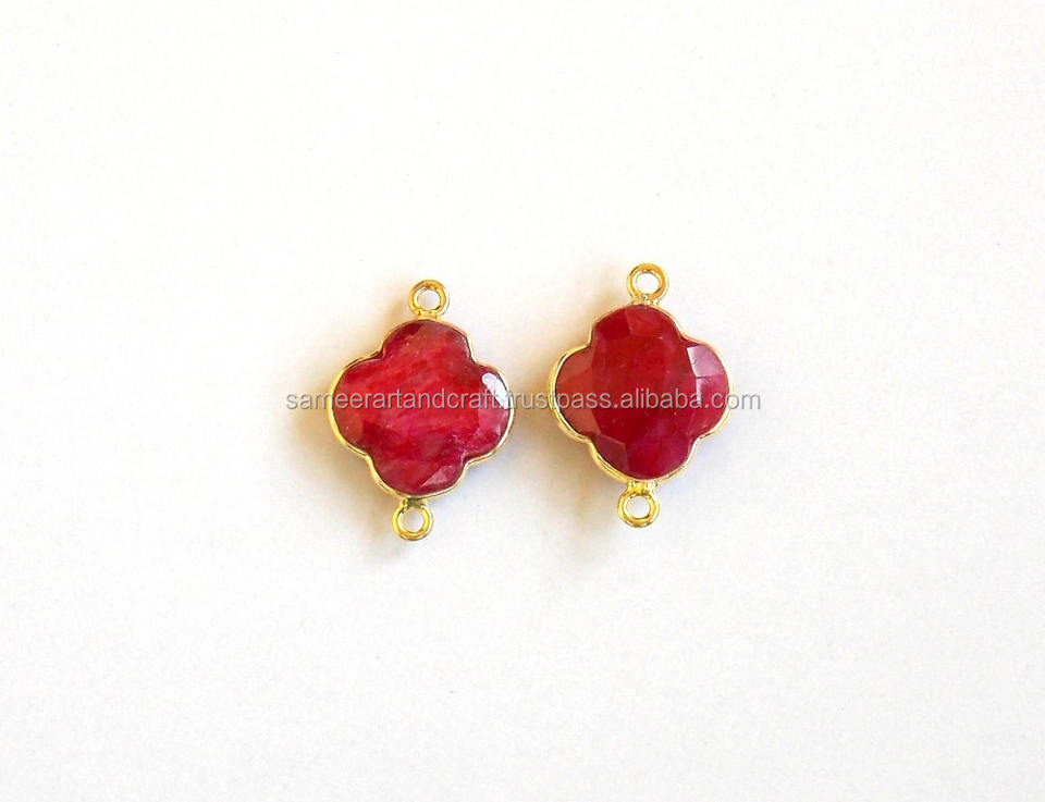 Connecteur de lunette en argent sterling 925 fait à la main avec des pierres précieuses minérales teintées de rubis à facettes