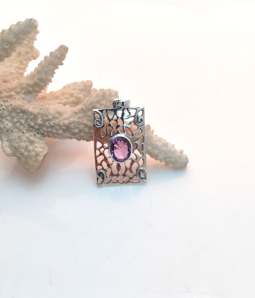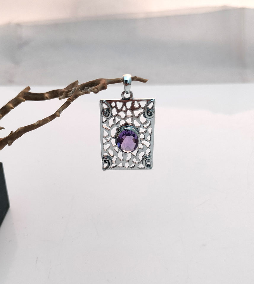 Lunette en argent sterling 925 faite à la main, pendentif en améthyste ovale, breloques, bijoux pour femmes
