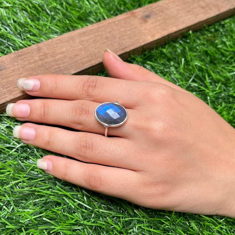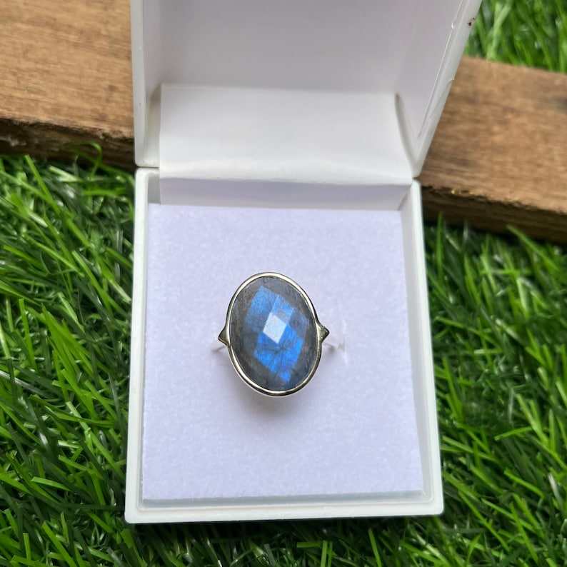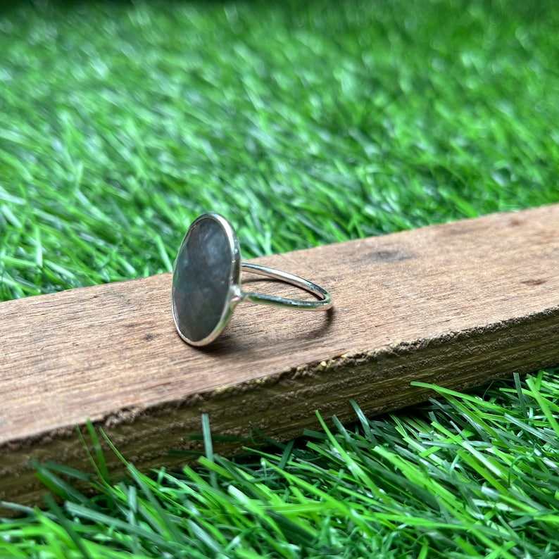 Bague Boho en argent sterling 925 faite à la main avec pierre Labradorite naturelle taillée ovale pour mariage ou cadeau d'anniversaire
