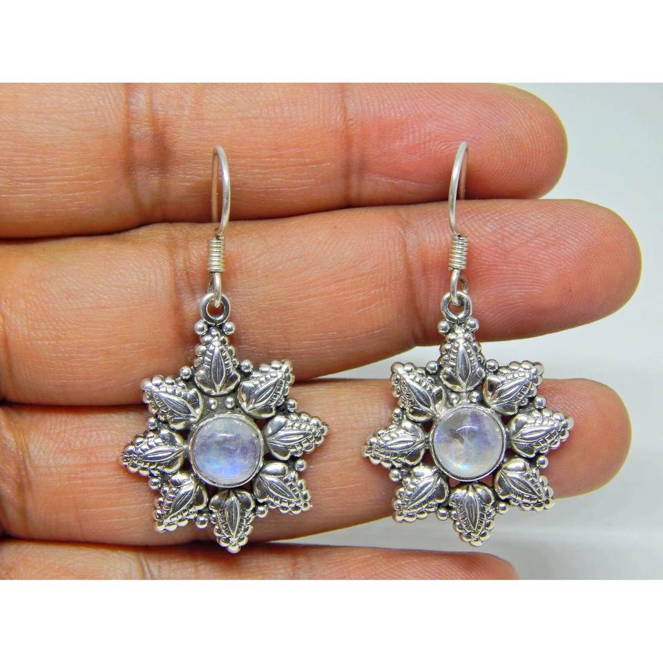 Boucles d'oreilles en argent sterling 925 faites à la main avec pierre de lune naturelle Trendy Diamond Quartz Zircon Perfect Gift