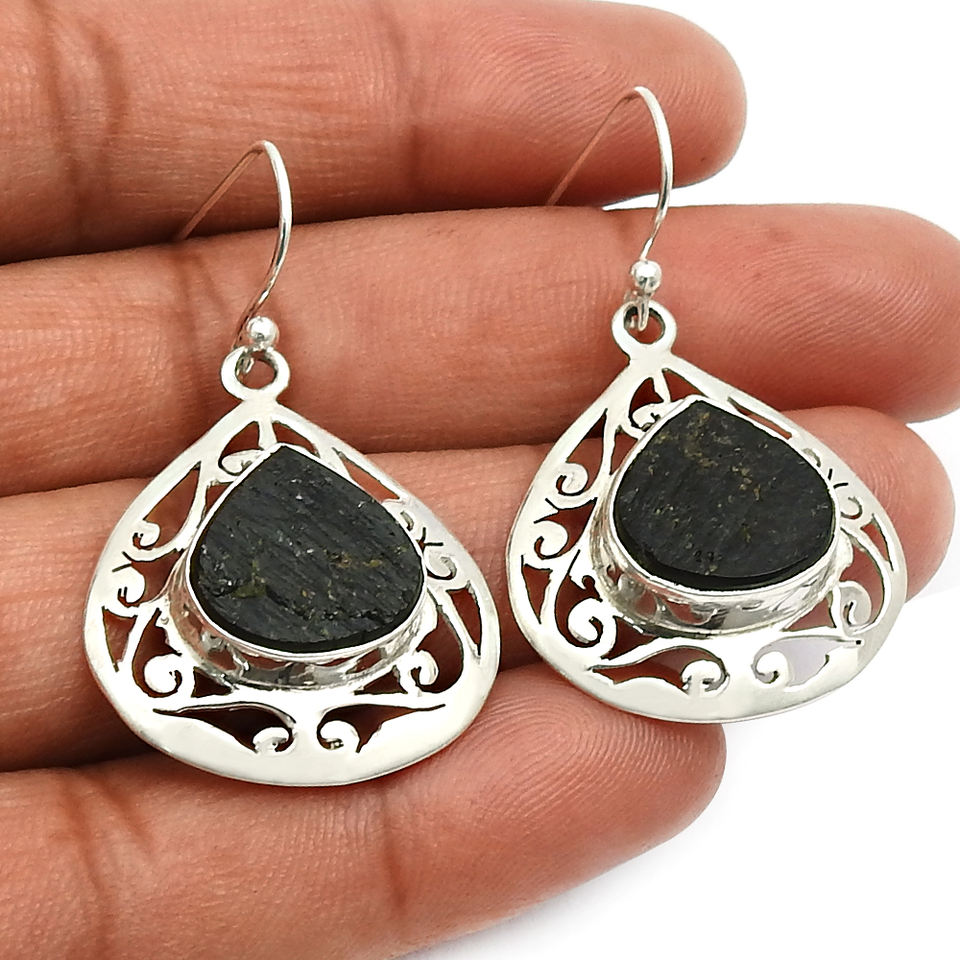 Boucles d'oreilles fines en argent sterling 925 faites à la main, design unique, pierre précieuse de tourmaline noire naturelle, exportateur de bijoux de mode pour femmes