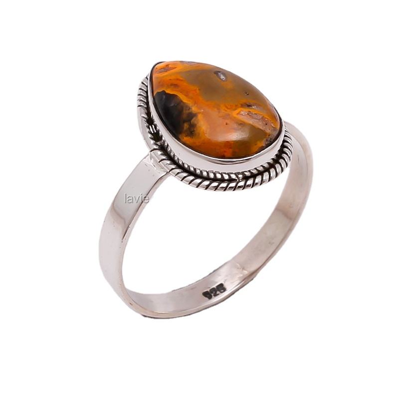 Bijoux fins en argent sterling 925 faits à la main bourdon naturel jaspe pierres précieuses anneaux de mariage fabricant en gros