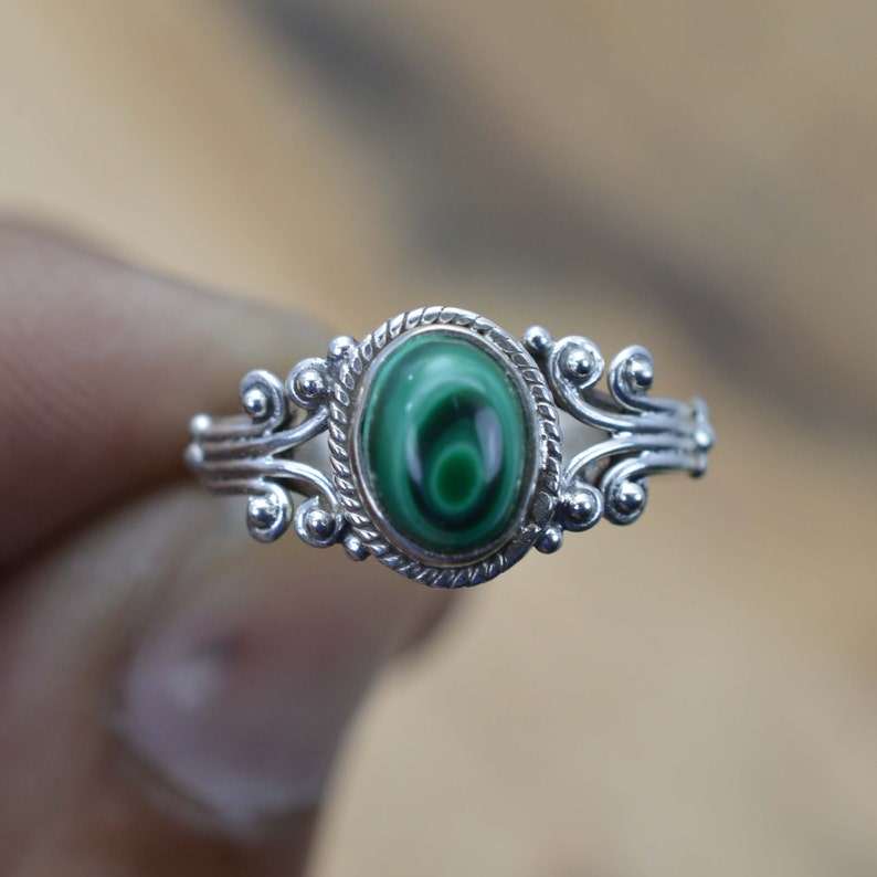 Bague fine en argent sterling 925 faite à la main Design classique unique avec pierre précieuse de malachite naturelle Vermeil d'éternité personnalisé