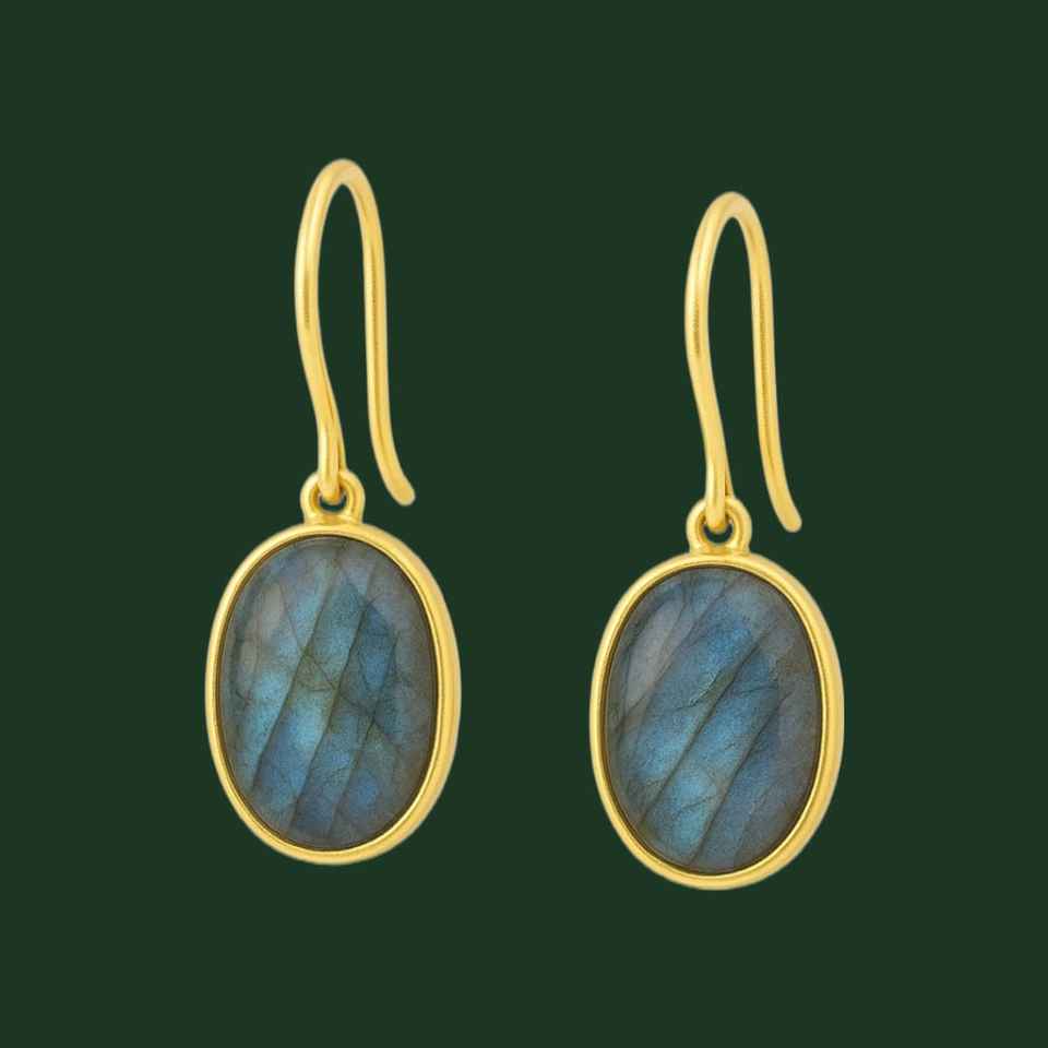 Fait à la main 925 Sterling Silver Labradorite Hook Stud Boucles d'oreilles Femmes Creative Vintage Indian Fine Jewelry Géométrique Anniversaires