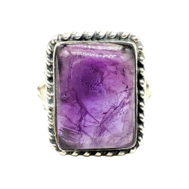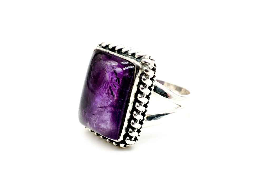 Fait à la main solide 925 argent Sterling naturel améthyste pierre bijoux fins unisexe anneaux de mariage concepteur à la mode