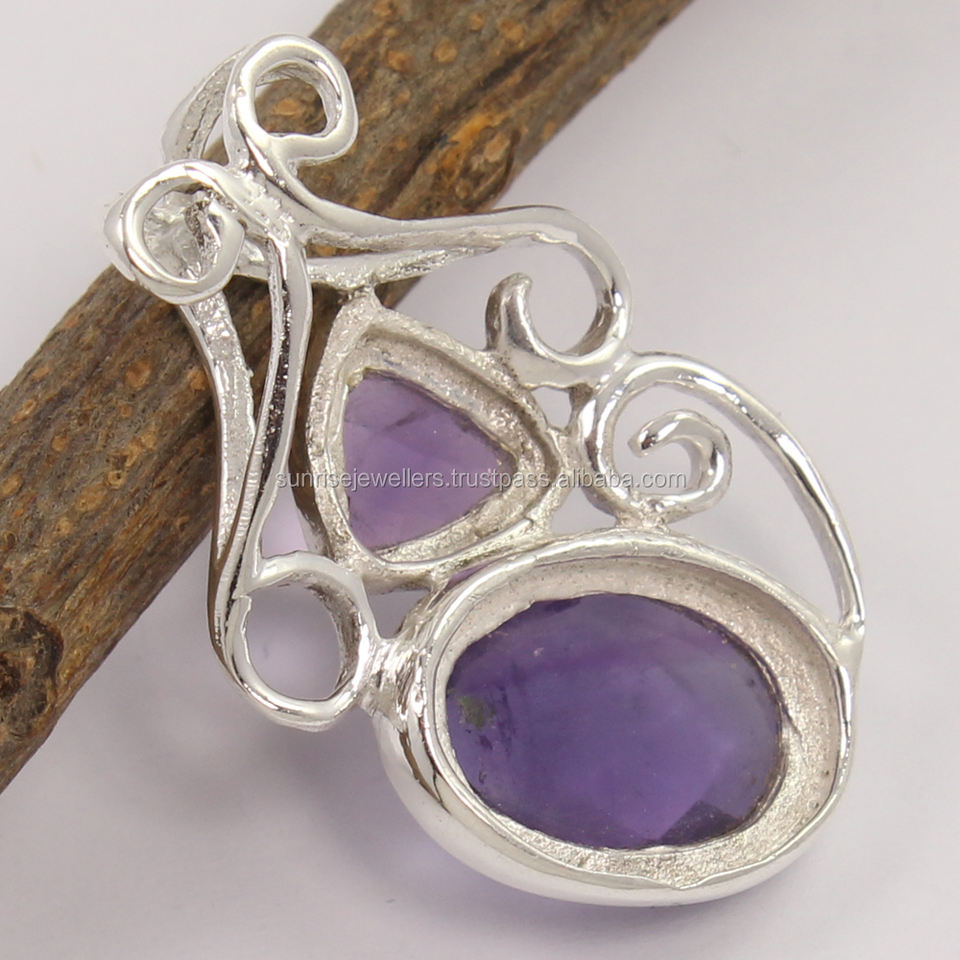 Pendentif en argent sterling 925 fait à la main, pierre précieuse améthyste naturelle, haute qualité, serti à la bélière polie au rhodium, certifié par un tiers