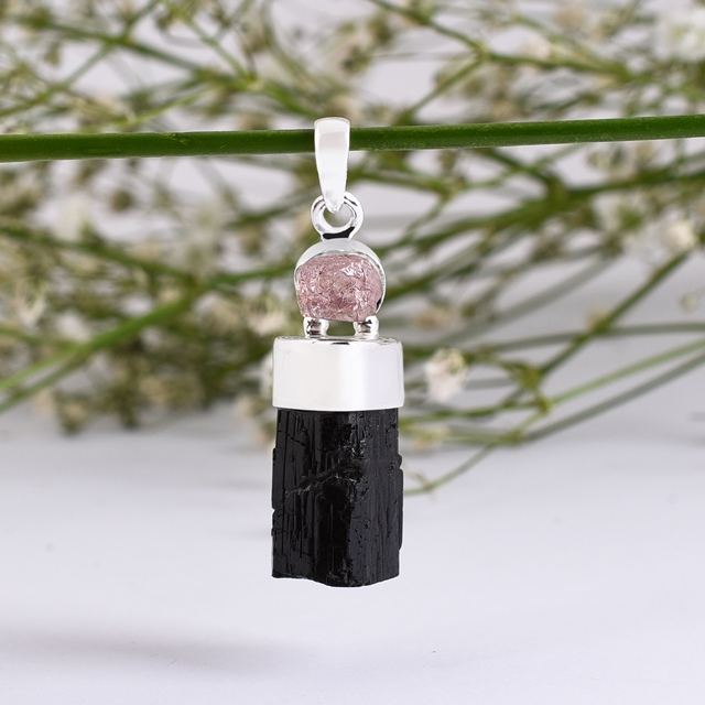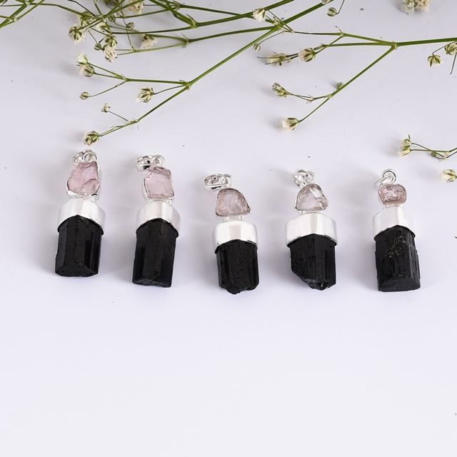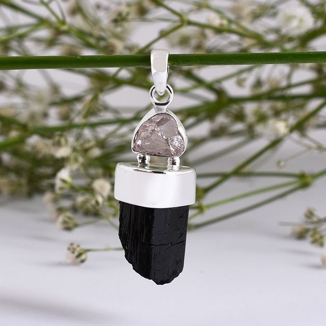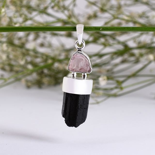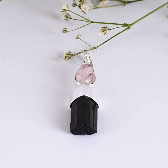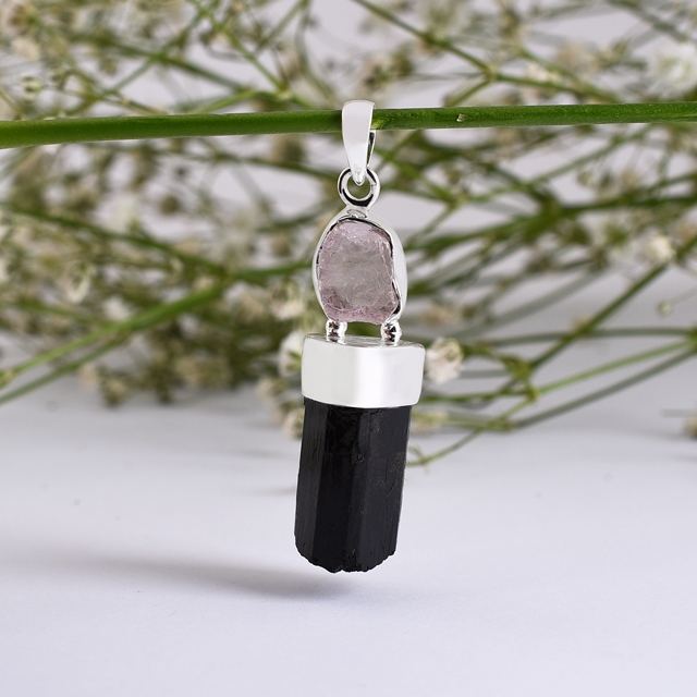 Pendentif en argent sterling 925 fait à la main avec des pierres précieuses naturelles Morganite Tourmaline or jaune bijoux sains cadeau pour elle