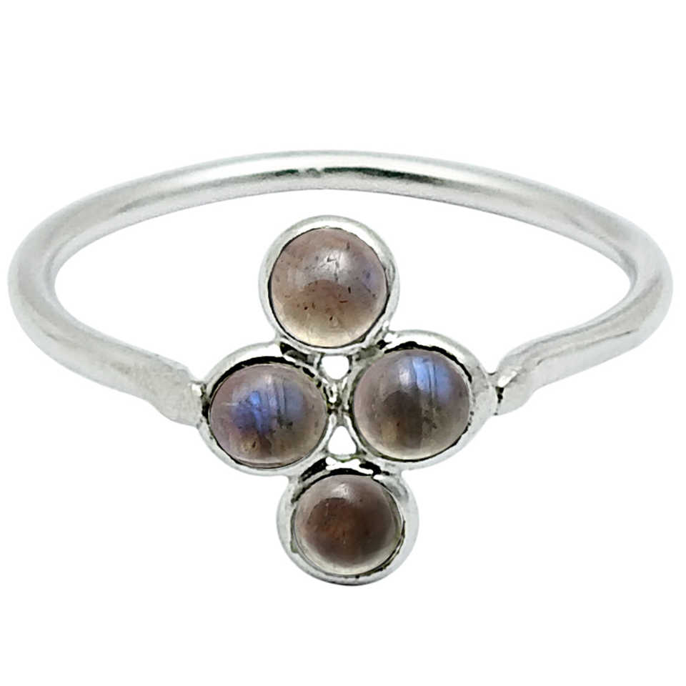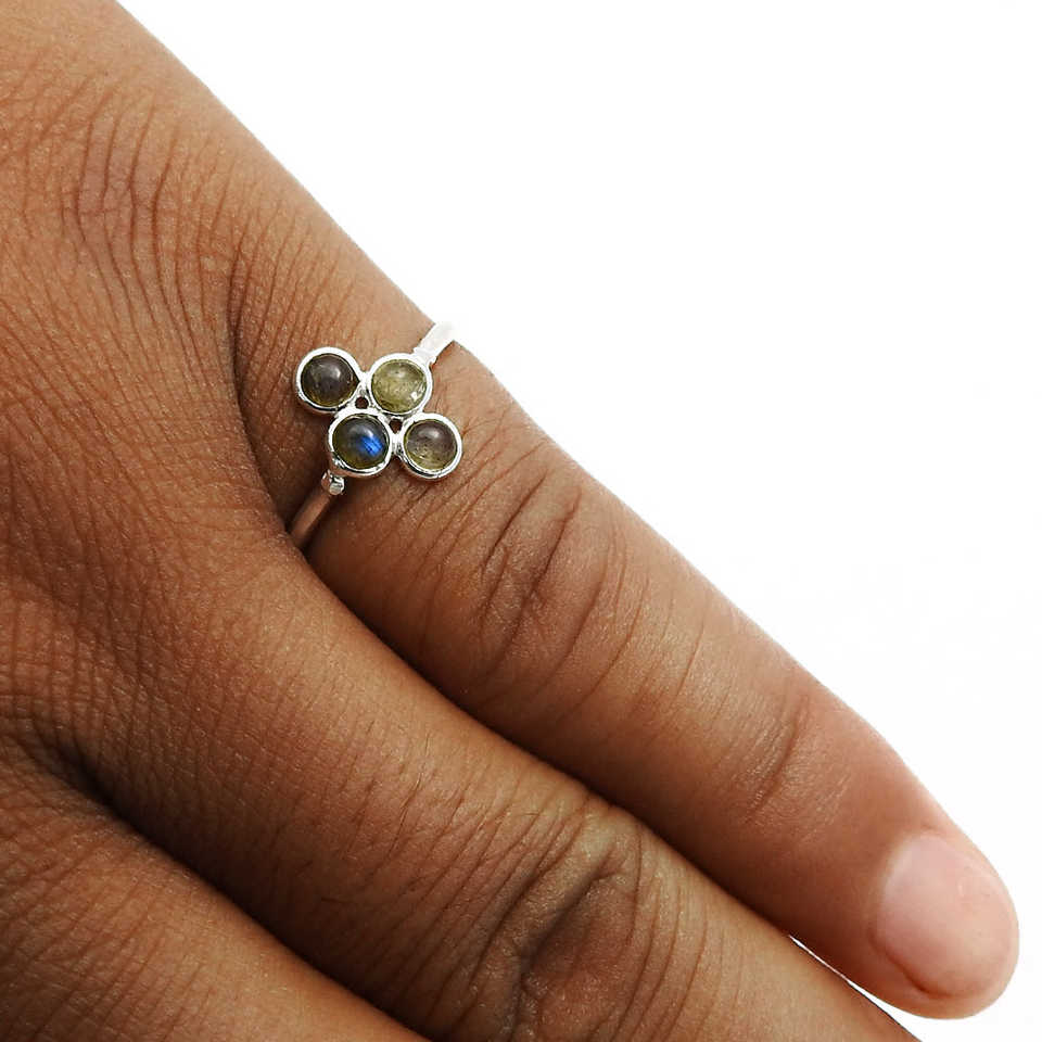 Bague en argent sterling 925 faite à la main avec pierre précieuse labradorite naturelle, bijoux bohèmes faits à la main avec quatre pierres précieuses pour femmes