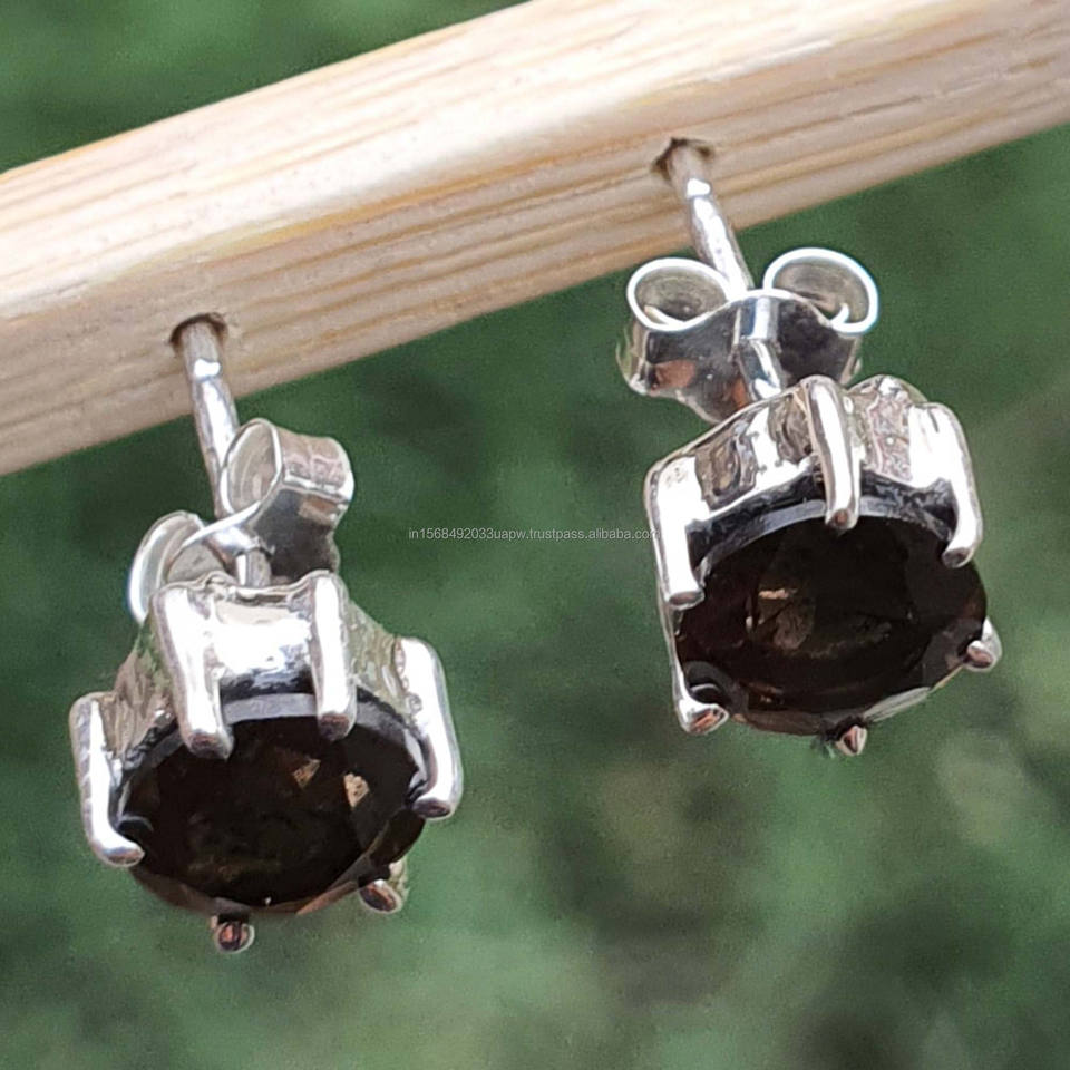 Product Name:Natural Smoky Quartz 925 Sterling Silver Stud Earrings
