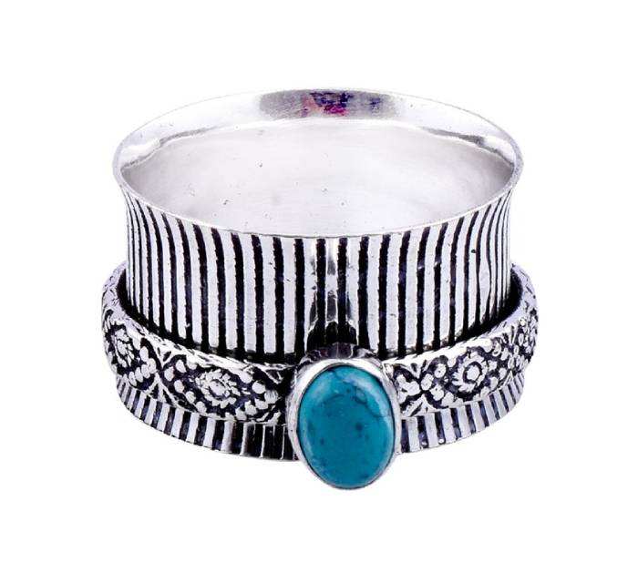 Bague Spinner en Argent Sterling 925 Fait à la Main de Haute Qualité Véritable Turquoise Pierres Précieuses Naturel de Haute Qualité Bague Spinner Fine Ring