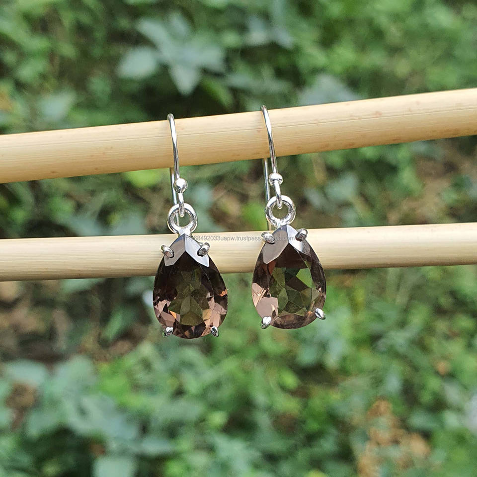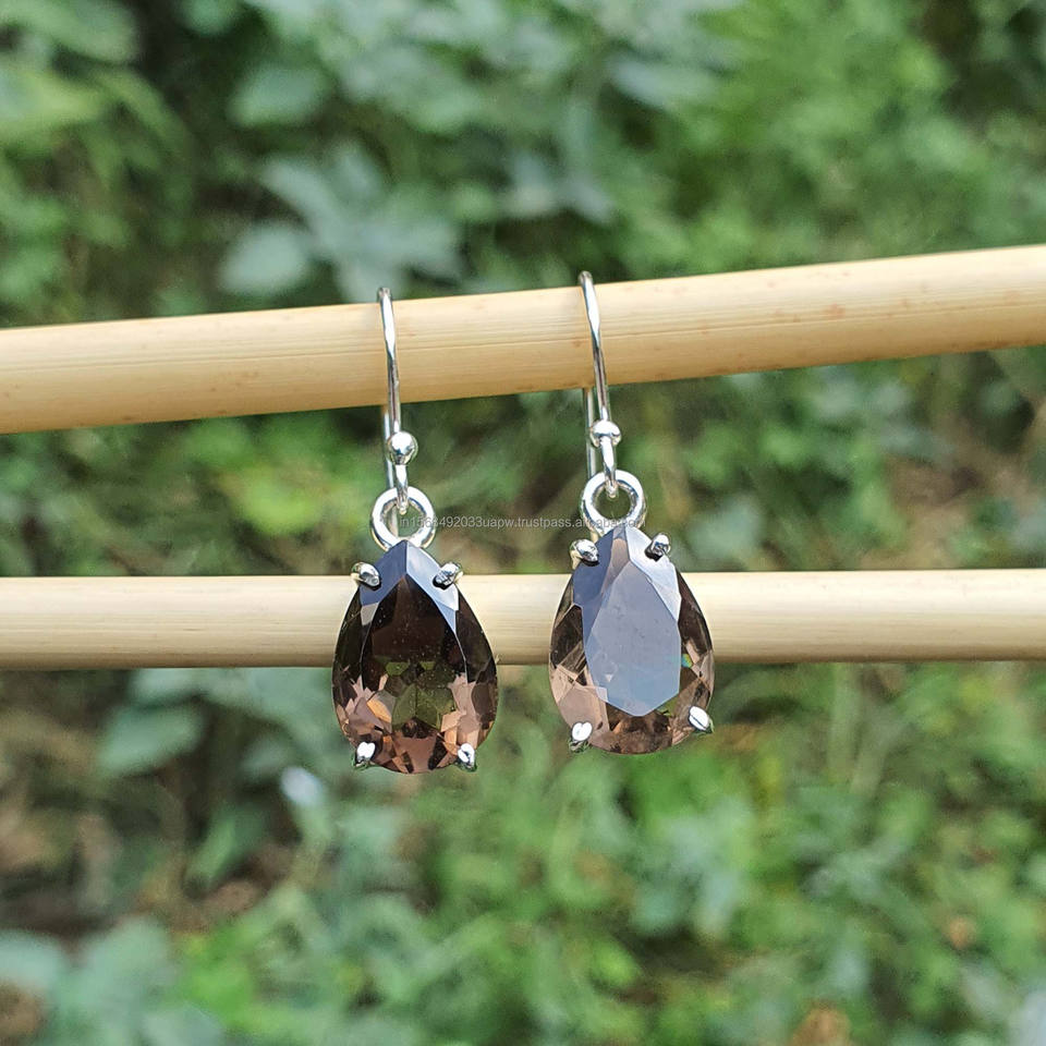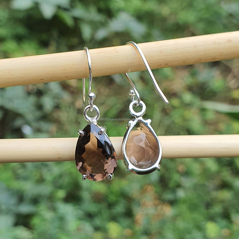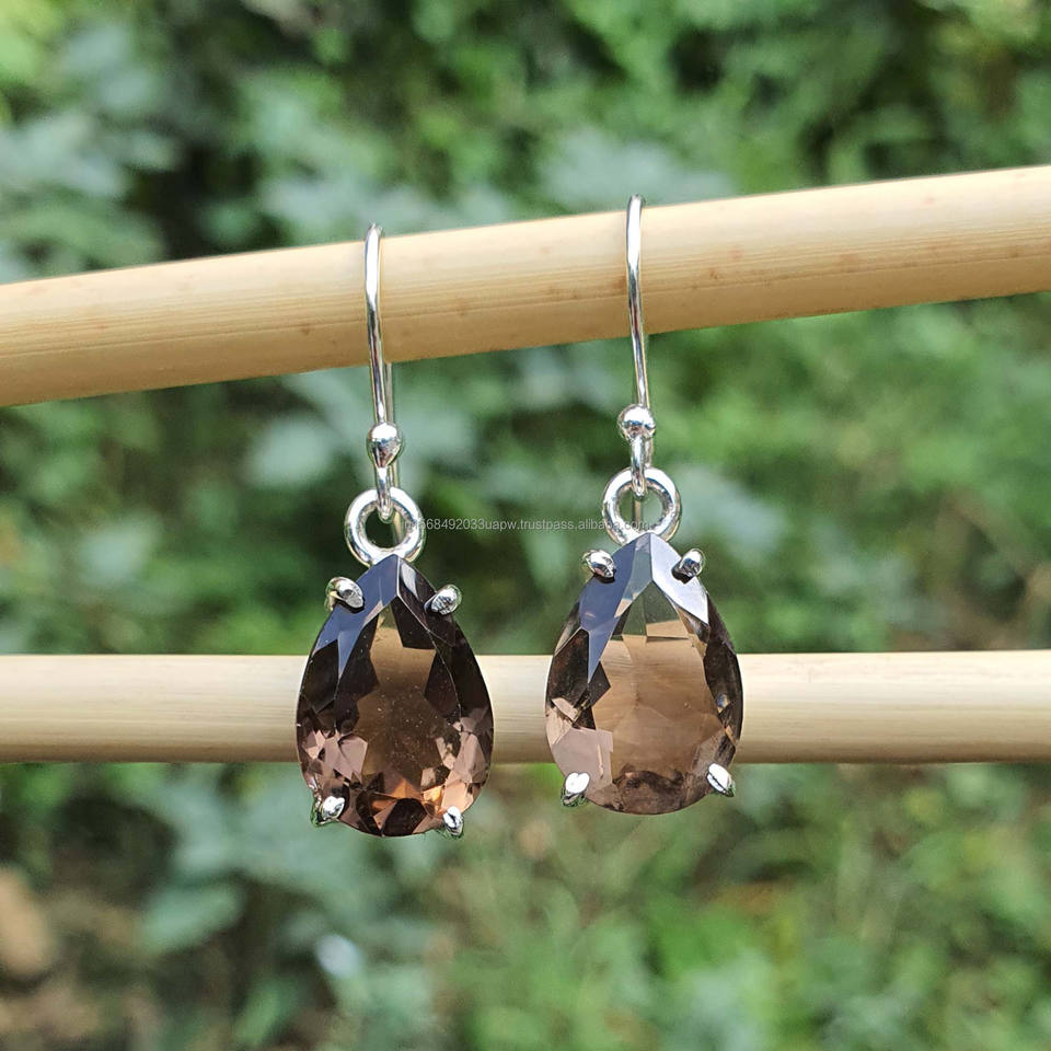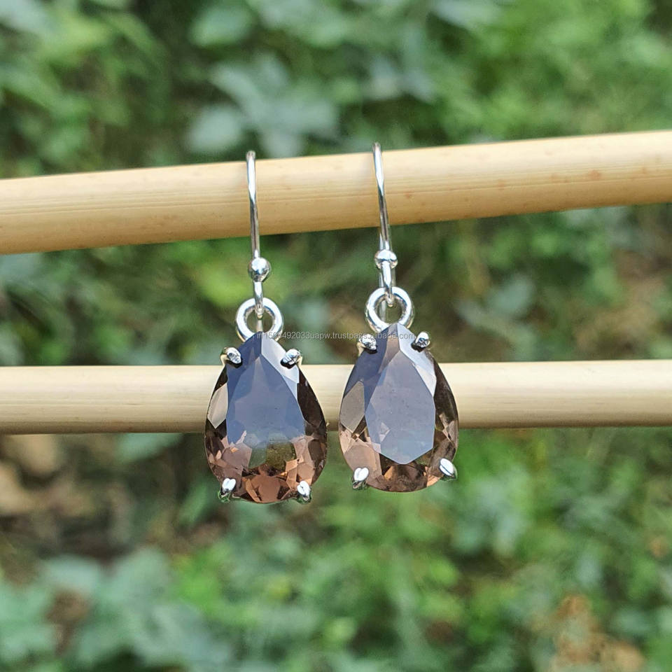 Product Name:Natural Smoky Quartz 925 Sterling Silver Dangle Drop Earrings