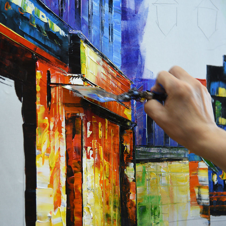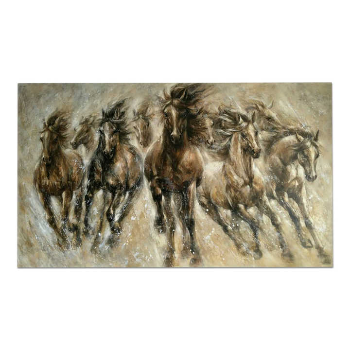 Abstraite à la main Antique Maison Marchandises Huit Course Course Cheval Peinture À L'huile