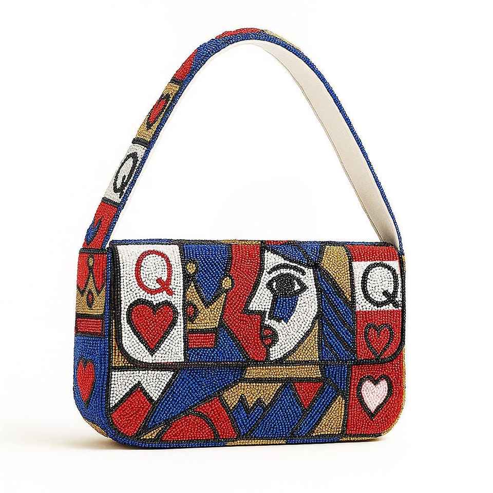 Sac à bandoulière artisanal en mosaïque de verre abstrait avec perles de rocaille, motif géométrique coloré, sac à rabat en tissu, pour femme, mode, soirée