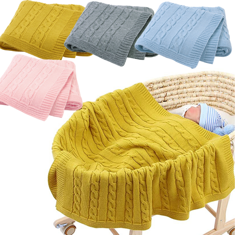 Couverture de literie en acrylique pour nouveau-né, tricotée à la main, pour berceau, poussette, voiture, réception de câbles crochetés, couverture de canapé, pull, couette