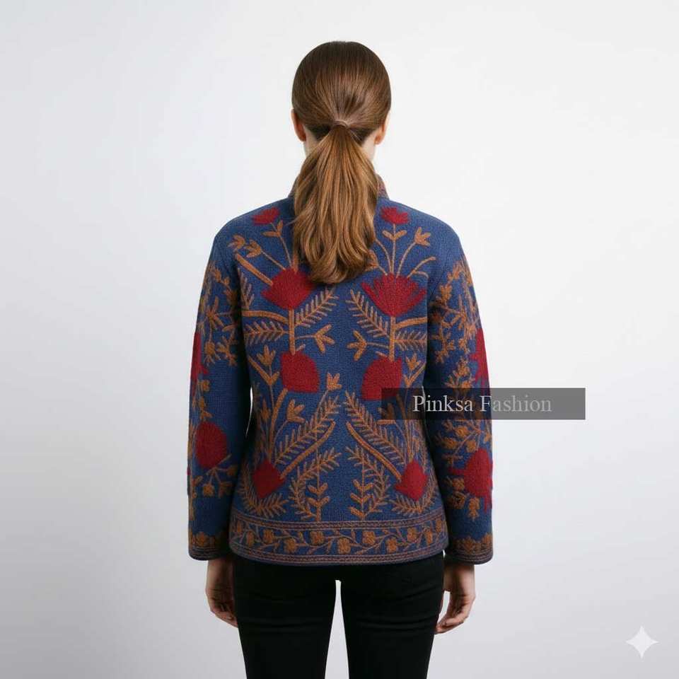 Coton fini brodé artisanal, motif floral, esthétique bohème, velours bleu, séchage rapide, respirant, écologique, de luxe pour femme