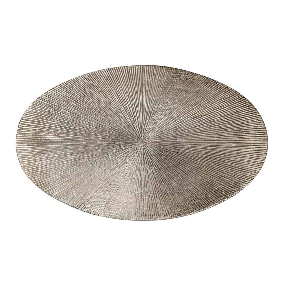 Ensemble de table d'appoint en aluminium et fer faits à la main de 2 pièces à texture ovale Sunray pour meubles de salon et de chambre à coucher