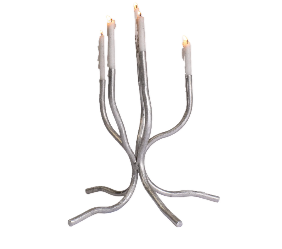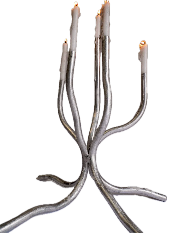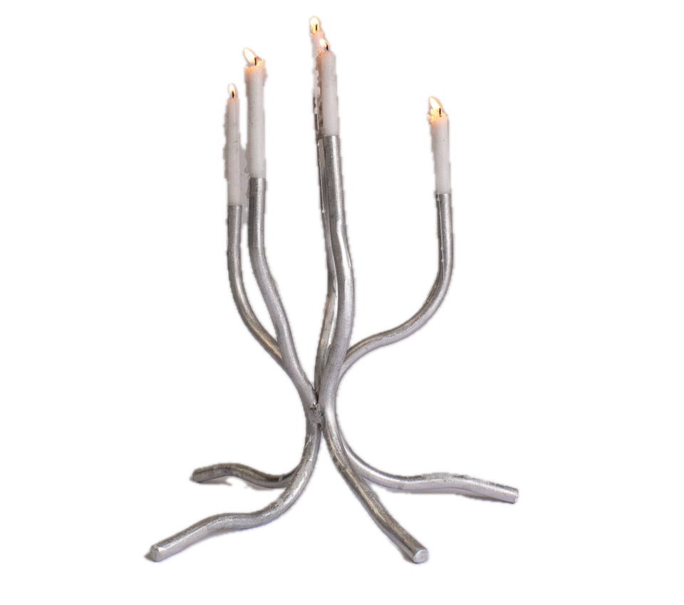 Candélabre en aluminium durable fait main à 5 bras, porte-bougie conique argenté, décoration de Noël écologique pour la maison