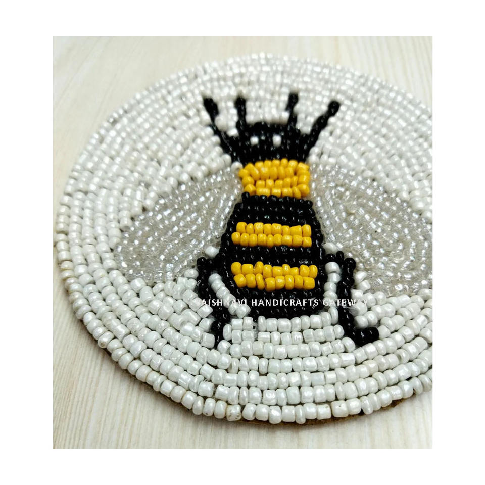 Dessous de verre de thé perlé de conception d'abeille étonnante faite à la main en pierre durable pour la décoration d'hôtel et de maison