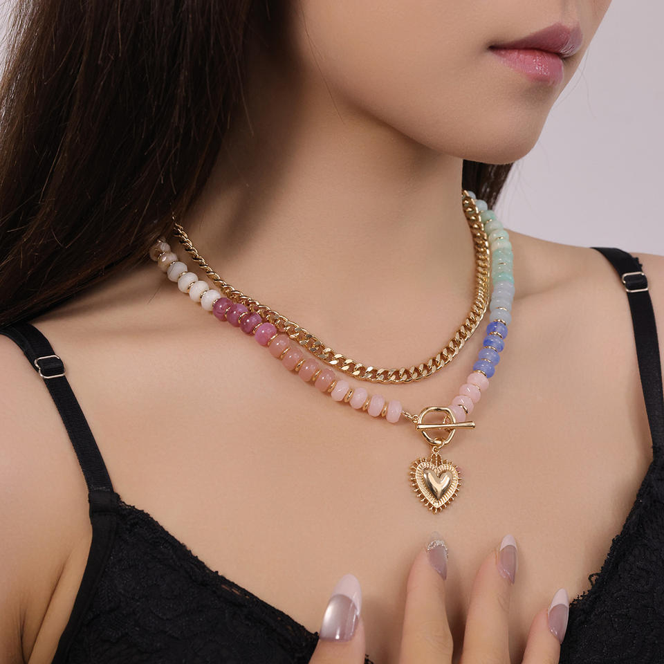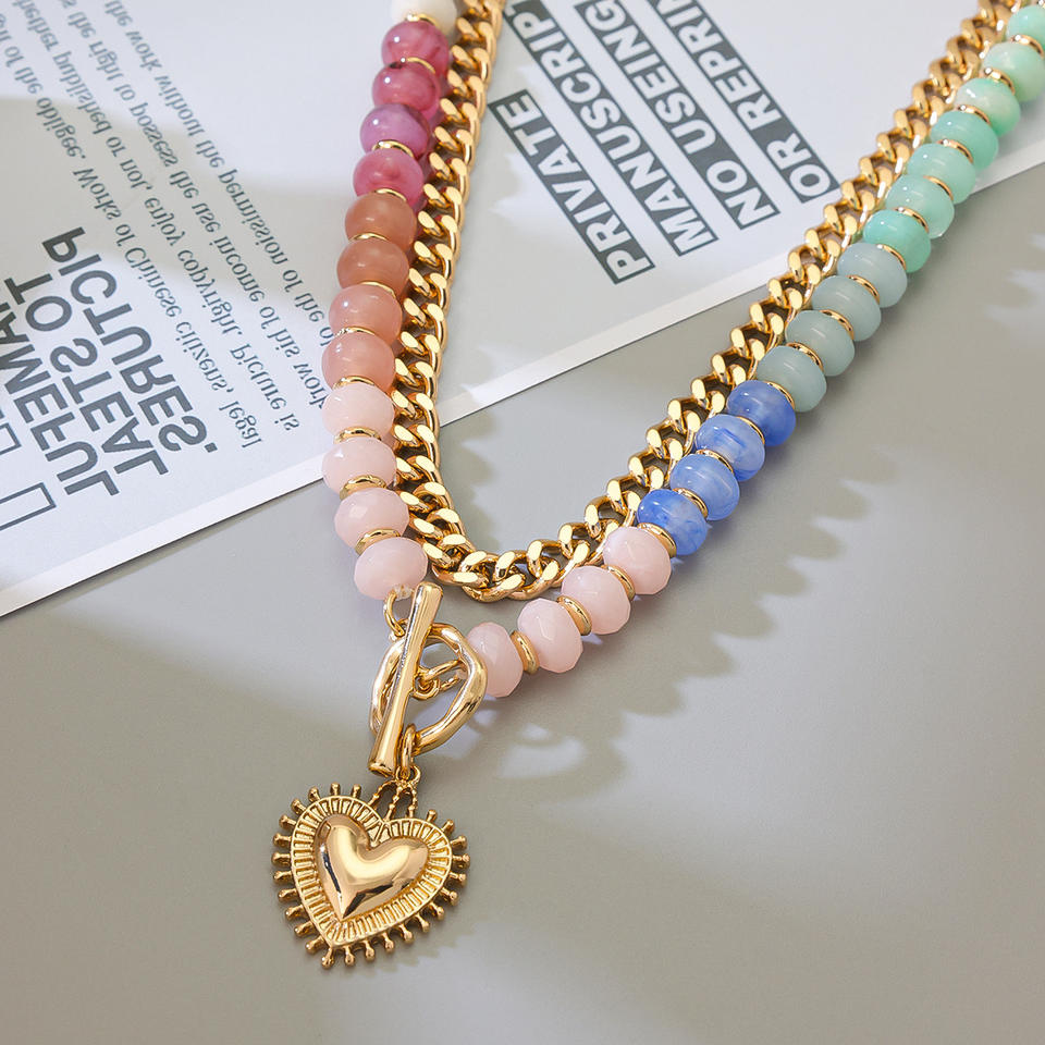 Collier chaîne délicat en perles acryliques couleur dopamine, écologique, style superposition unique, pendentif cœur pour femme