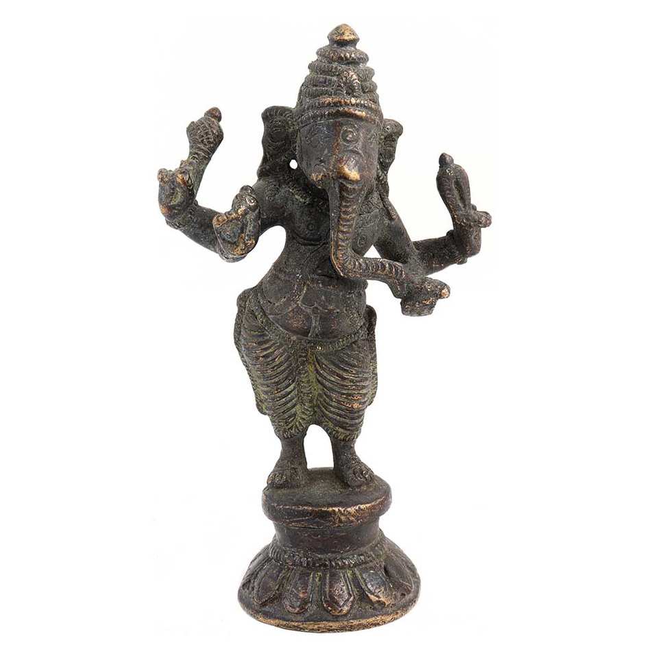 Statue debout Ganesha Chaturbhuja en laiton
