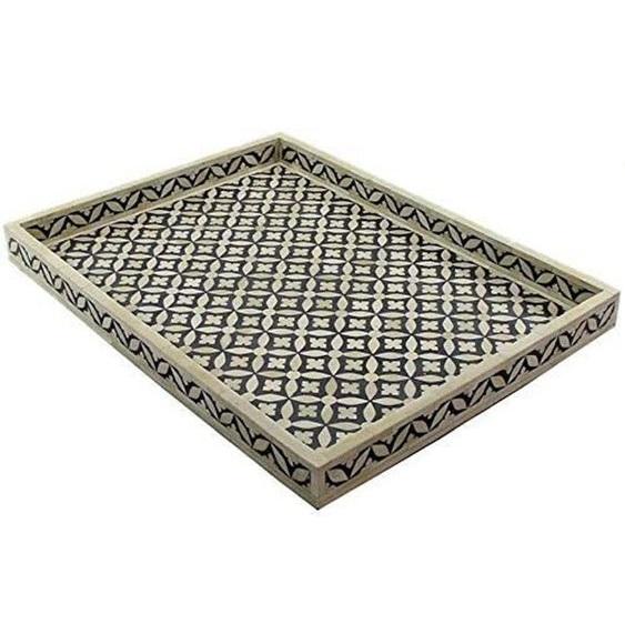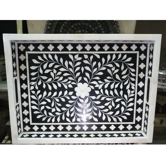 Plateau en incrustation d'os indien pour la maison, hôtel, motel, plateau de service, plateau ottoman en incrustation d'os antique fait à la main