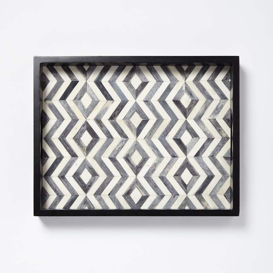 Plateau de service en incrustation d'os