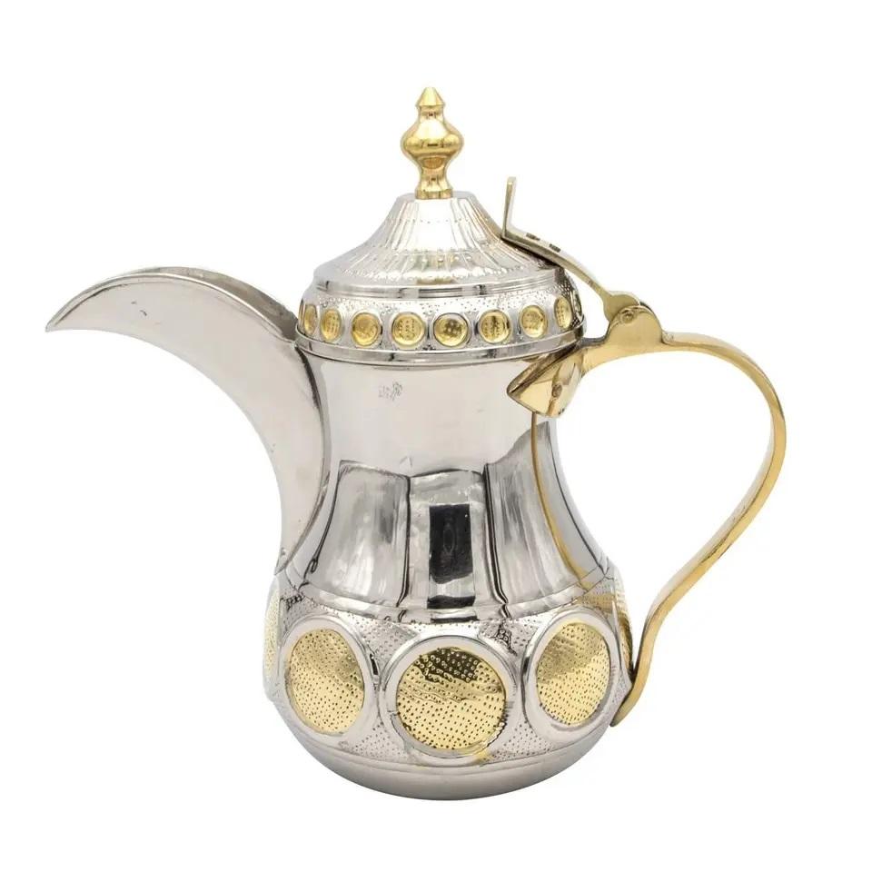 Bouilloire à café Dallah arabe faite à la main finition or et argent cafetière traditionnelle de luxe pour le Ramadan Eid et le service quotidien