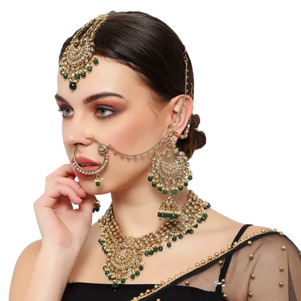 Ensemble de bijoux Collier, Boucles D'oreilles, Front Maang Tika, Nez Anneau