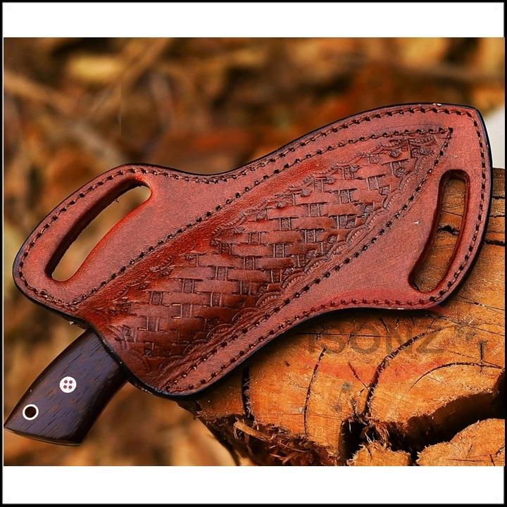 Handmade Attractive Brown Leather Knife Sheath Engraved Knife Holster for Fixed Blade Knives.