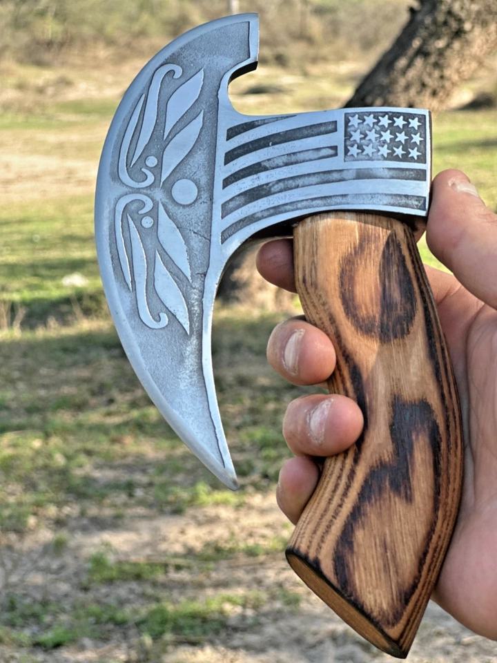 Coupe-pizza artisanal en forme d'axe, en acier inoxydable, avec manche en bois, coupe-pizza personnalisé pour la cuisine, outil de cuisine créatif