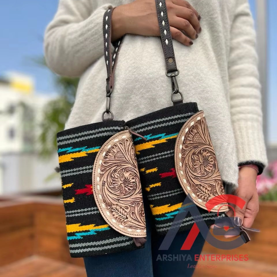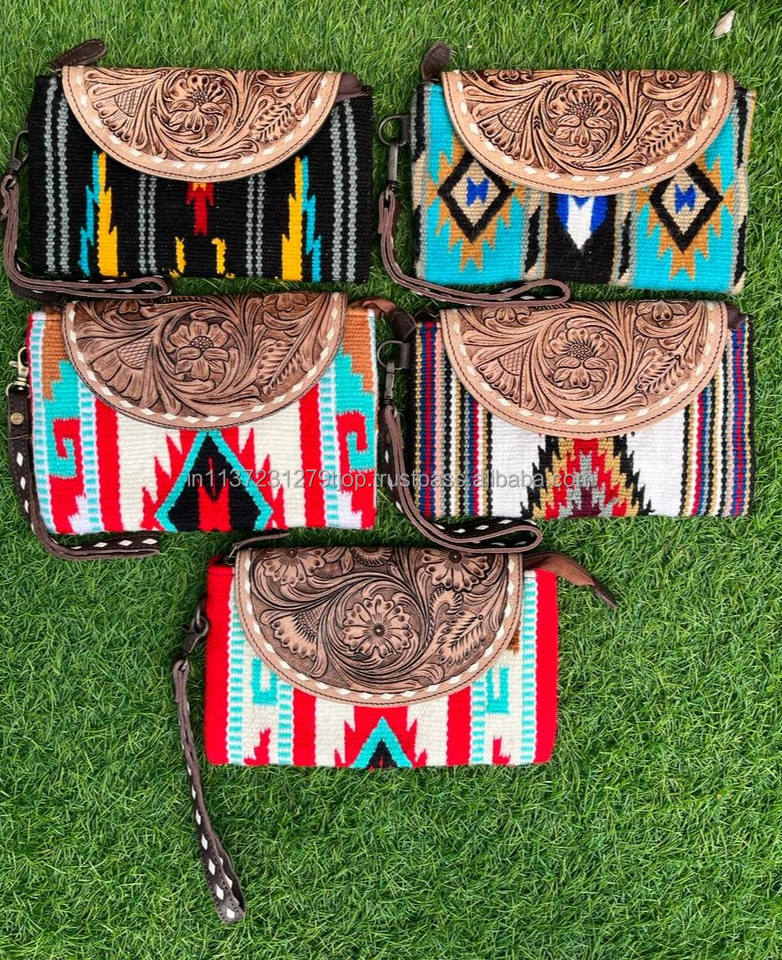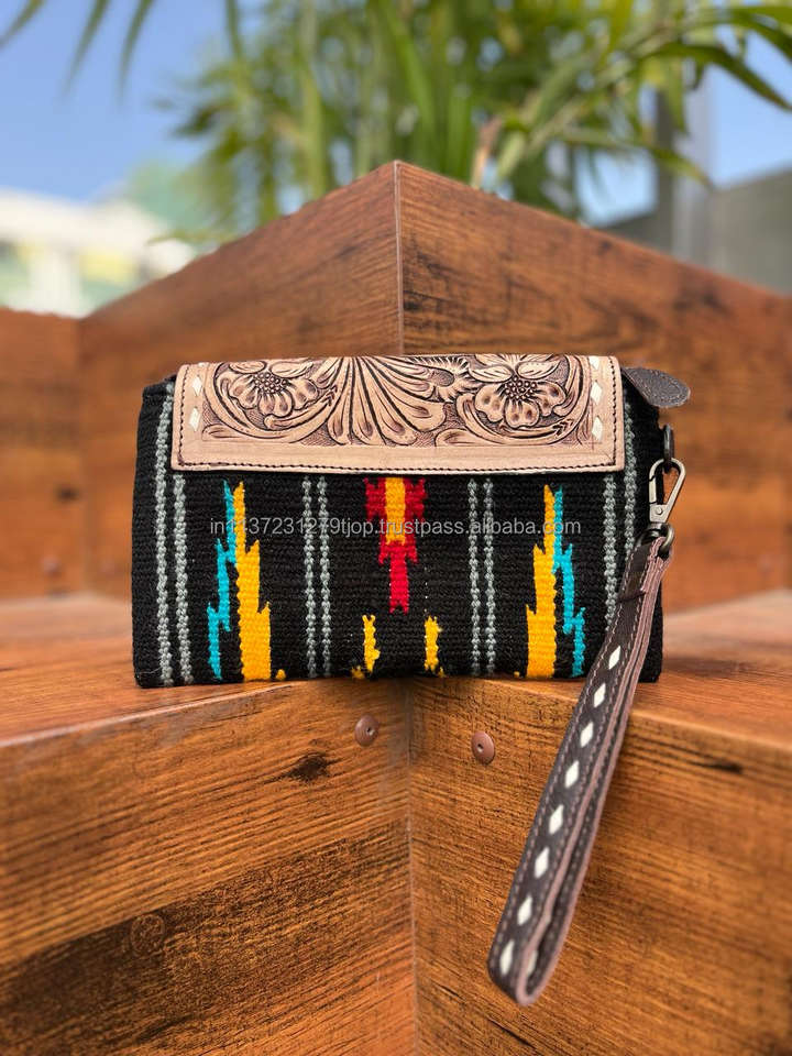 Pochette en cuir usiné aztèque faite à la main femmes élégantes couverture de selle portefeuilles en cuir embrayages de bracelet en cuir usiné de haute qualité
