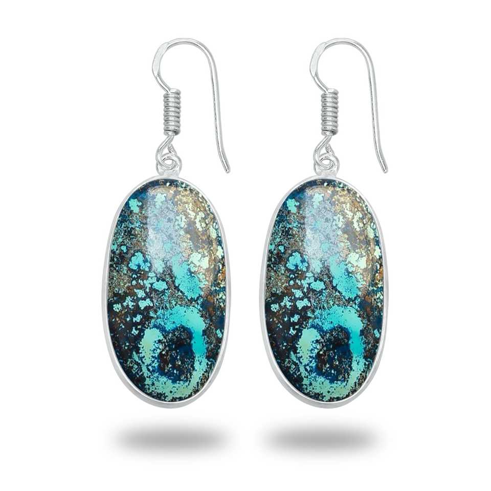 Boucles d'oreilles pendantes en argent massif plaqué laiton de haute qualité, pierres précieuses azurite de forme mixte, fabrication artisanale, bijoux fins pour elle