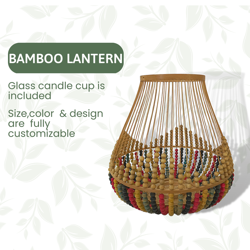 Lanterne en bambou faite à la main avec des perles colorées, porte-bougie décoratif pour la maison, le jardin, le mariage, style rustique bohème chic Vecraft