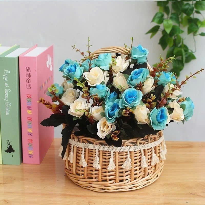 Panier en rotin de bambou fait à la main avec poignée panier de fleurs décoratif fraise cueillette fourre-tout naturel décor à la maison photographie accessoire